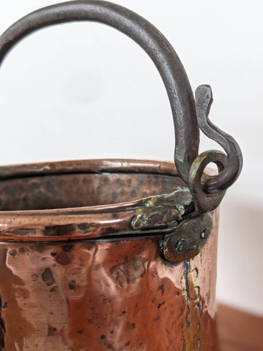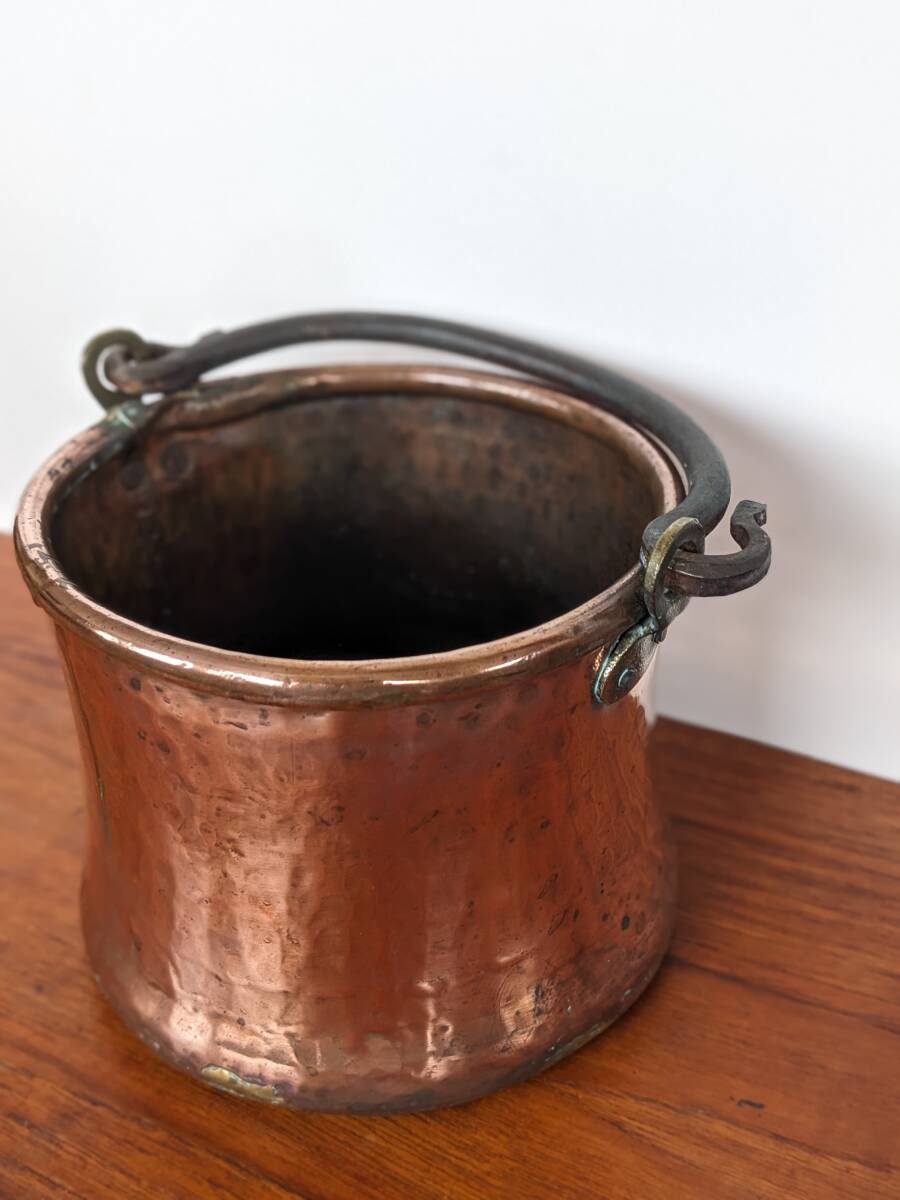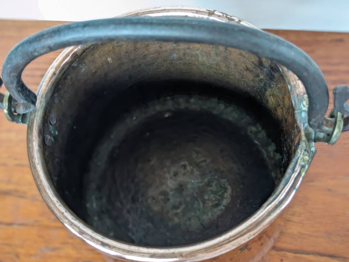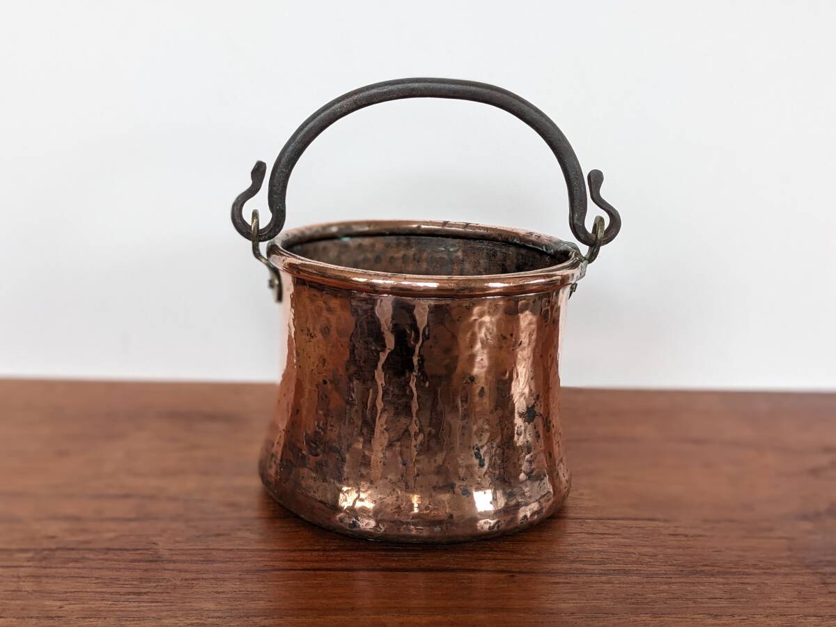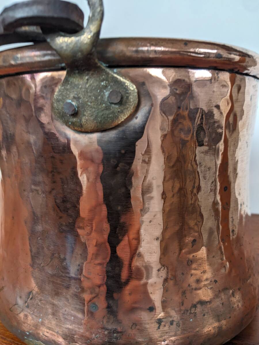貴重な古い北欧の打ち出し吊下げ取っ手付き銅鍋 (寸胴 鍋)です