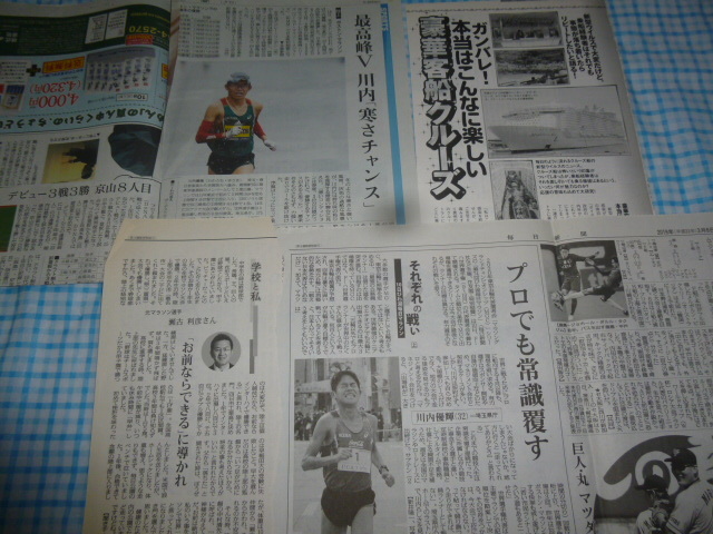 川内優輝記事他7p、瀬古利彦1p記事、設楽悠太1p、神野大地・服部勇馬1p、豪華客船クルーズ3p切り抜きです。