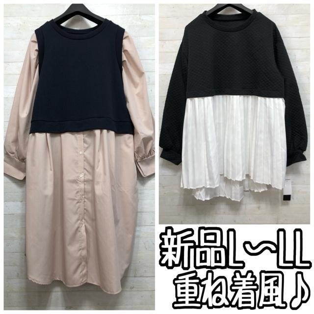 新品☆L~LL♪フェミニンな重ね着風トップス2枚セット♪〇B561