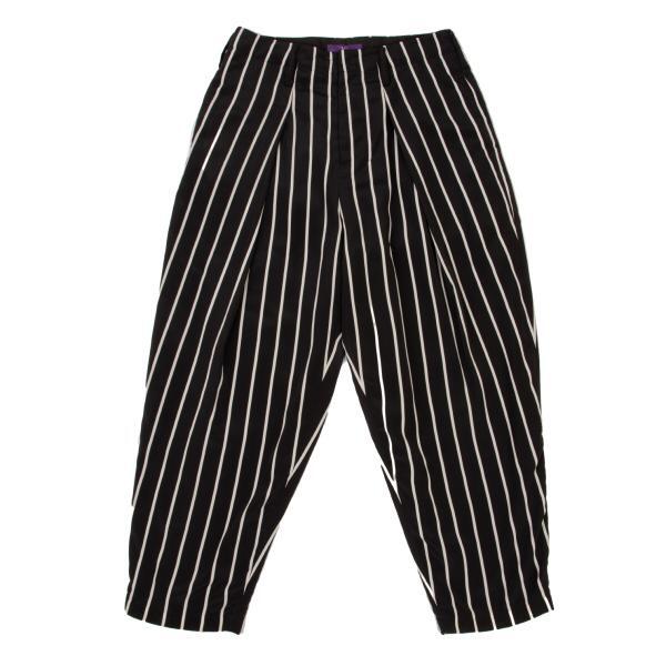 | タケシコウサカバイ ワイズ ピンクレーベルTAKESHI KOSAKA by Y's Pink Label ポリストライプタックパンツ 黒アイボリー2 |