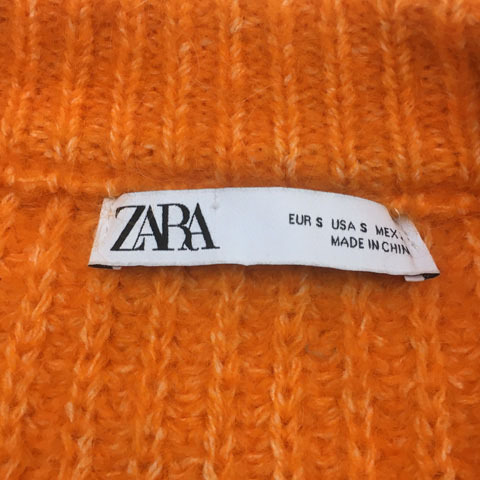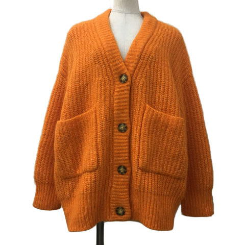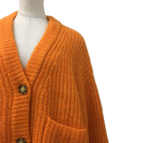 ザラ ZARA カーディガン ニット Vネック アルパカ混 メランジ オーバーサイズ 無地 長袖 USA S オレンジ レディース