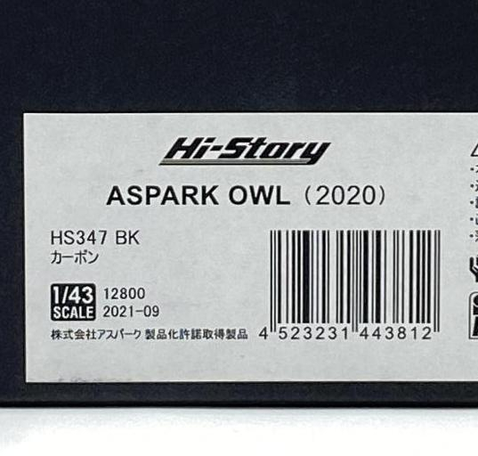 | 209999484023)【開封】ハイストーリー 1/43 ASPARK OWL 2020(カーボン) ミニカー |