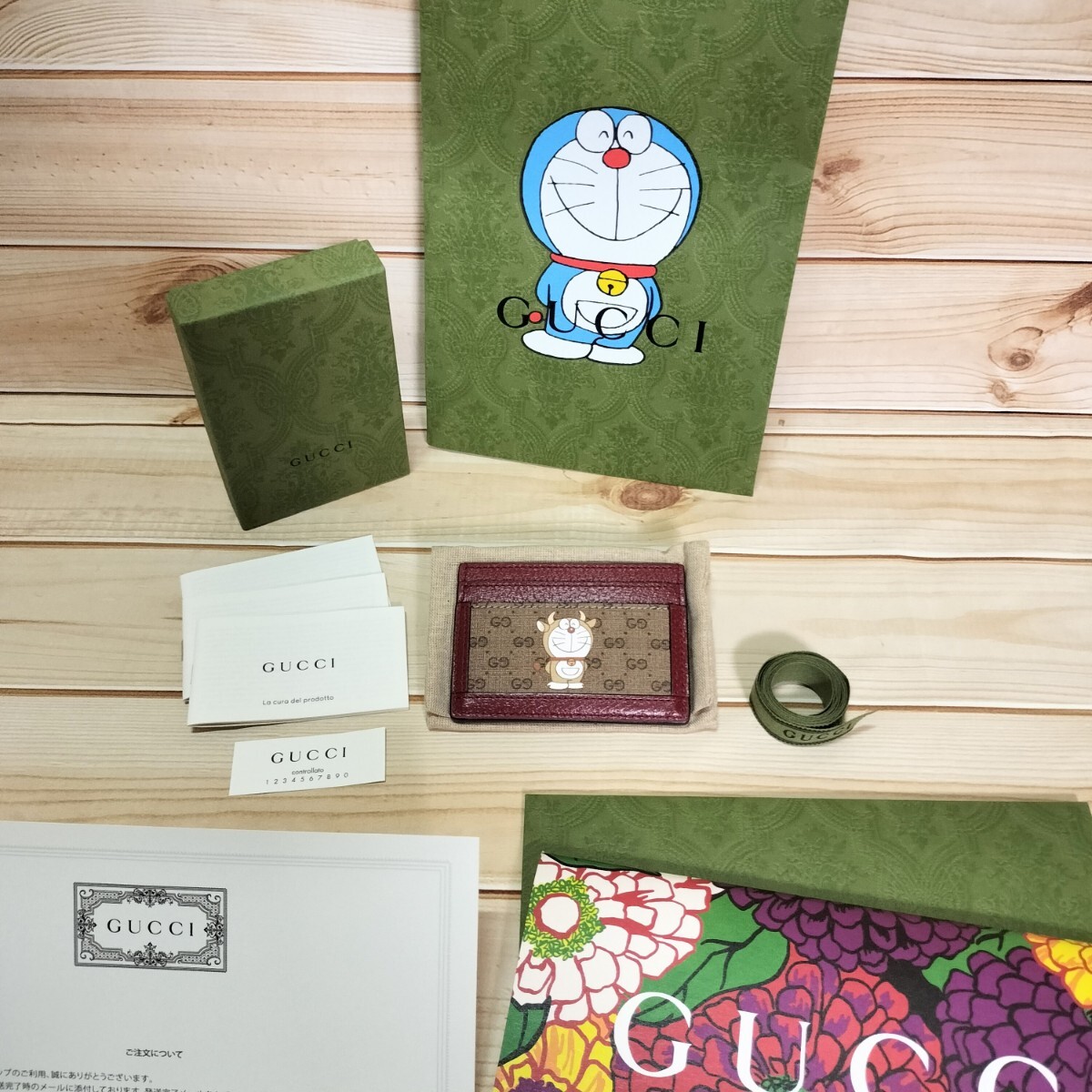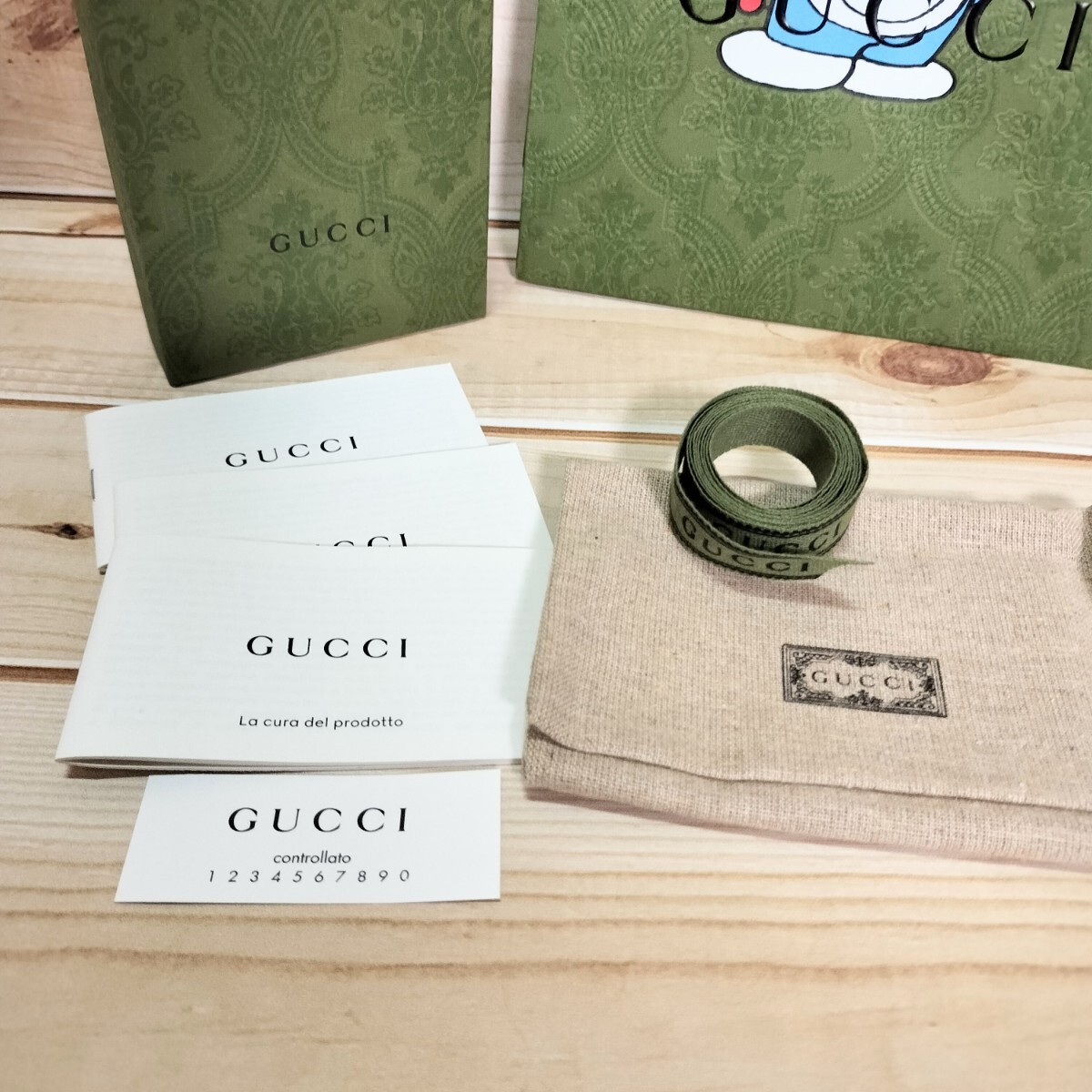 箱、リボン、保存袋、コントロールカード、ケアカード、ドラえもんの紙袋、