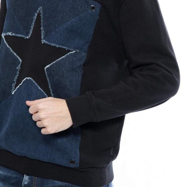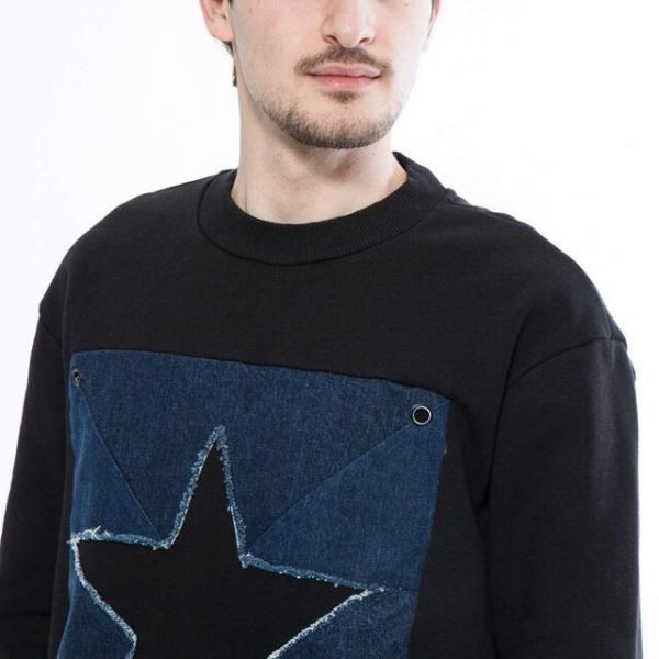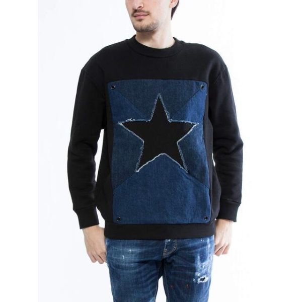 DIESEL スウェット デニム スター 切り替え トレーナー ブラック M ディーゼル