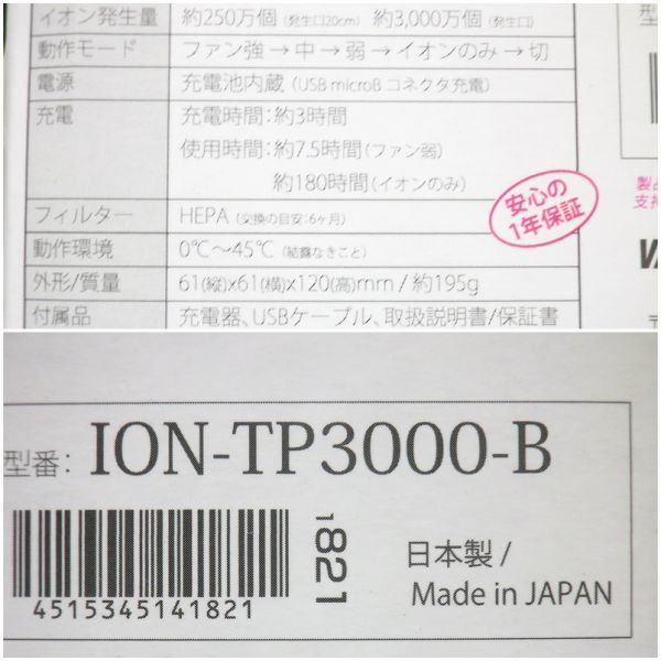 BK-11【未開封品】ママイオン デスクトップ型 空気清浄機 ION-TP3000-B◆PM2.5 花粉 細菌 ウイルス除去 |