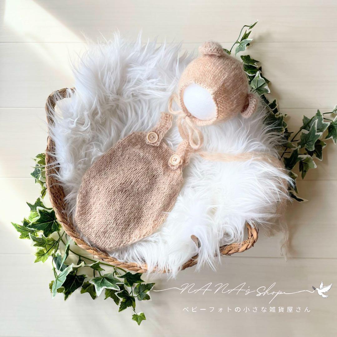 ニューボーンフォトにぴったりな手編み風かごセット【クマ】になります。()
