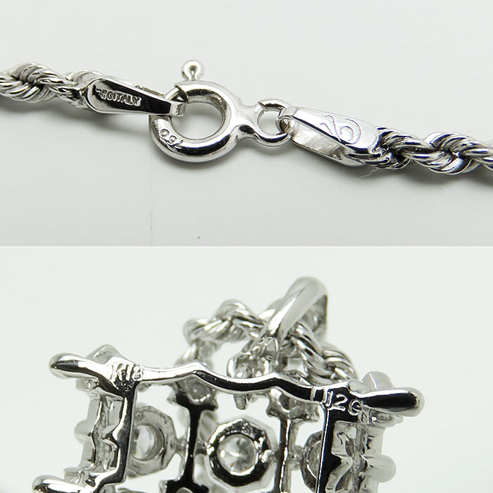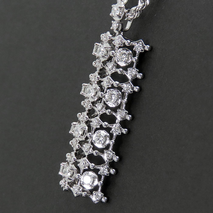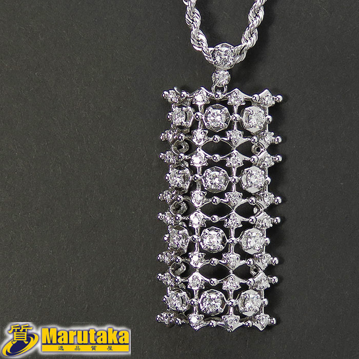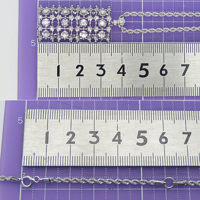 商品名 | 送料無料 750 K18WG ダイヤモンド ネックレス 透かしデザイン 60cm ロングチェーン ホワイトゴールド 鑑別書付 逸品質屋 丸高 24k352-4 |