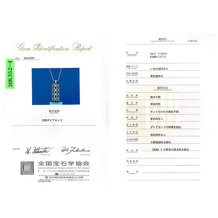素材 | トップ:K18 D1.20ct チェーン:750 |