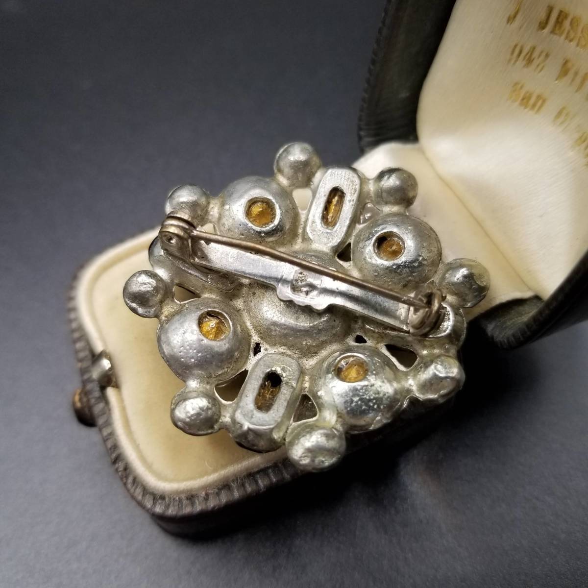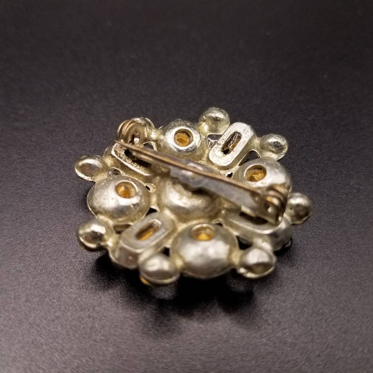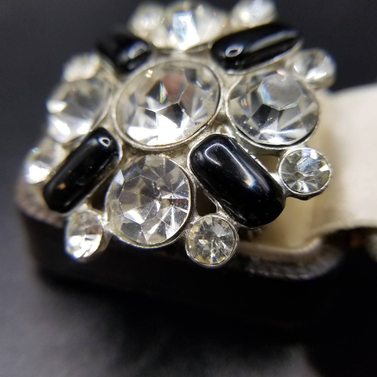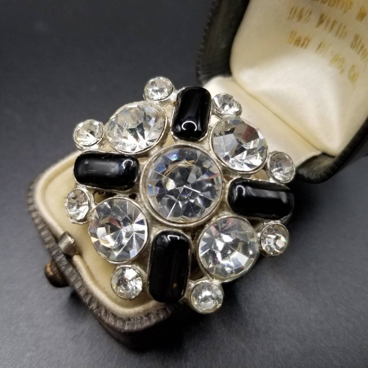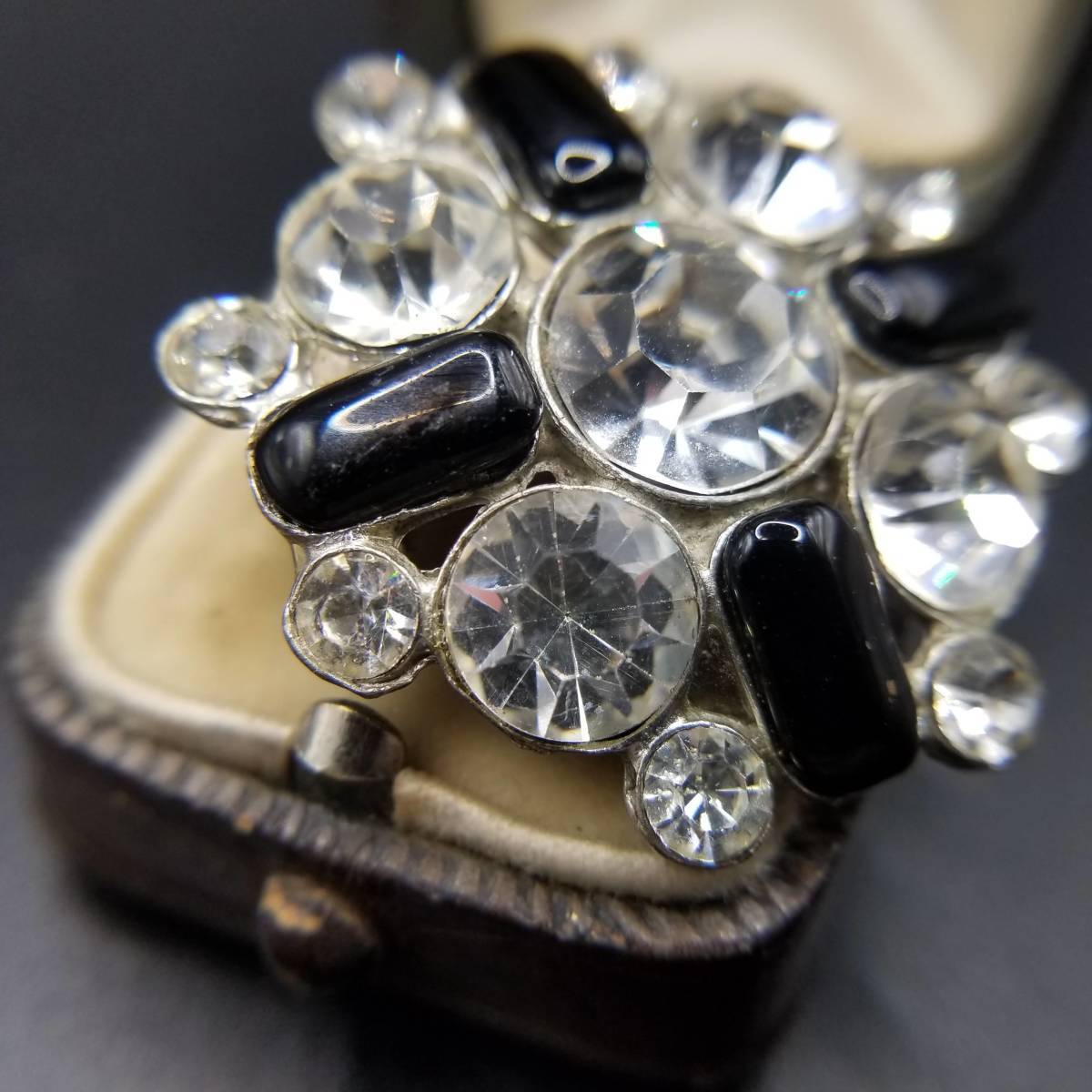アールデコ クリア/ブラック ビジュー バイカラー ヴィンテージ ブローチ レトロ コスチュームジュエリー ラインストーン 煌めき YAP⑥