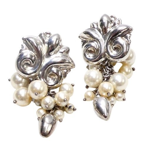 【商品説明】フェイクパールが揺れる葡萄のようなデザインの素敵なイヤリングです。ボリューム&存在感があり、耳元を華やかに彩ります。【状態】通常使用に伴う小キズ等が見られます。【サイズ】・W 25mm・H 約 50mm・パール:3.5~7.8mm・総重量:約 21.2g【カラー】画像でご確認ください【素材】・シルバー925・フェイクパール【仕様】・刻印:Ra52 925【付属品】なし※鑑別書・鑑定書は付属しておりませんのでご了承ください【商品番号】1186_4【注意事項】※商品の状態、色味などは当店の判断によるものです※あくまでも中古品につき、些細なダメージや見解の相違による返品はお受けできません※サイズはすべて平置きでの実寸です。多少の誤差はご了承ください※気になる点がございましたら、入札前にお問い合わせください※お取引に関する詳細はストア情報でご確認くださいこちらの商品は【ネコポス】での発送が可能です※ポスト投函・簡易包装での発送・日時指定不可・同梱不可※紛失・破損に対する補償金額は3,000円(税込)まで予めご了承の上、ご選択ください