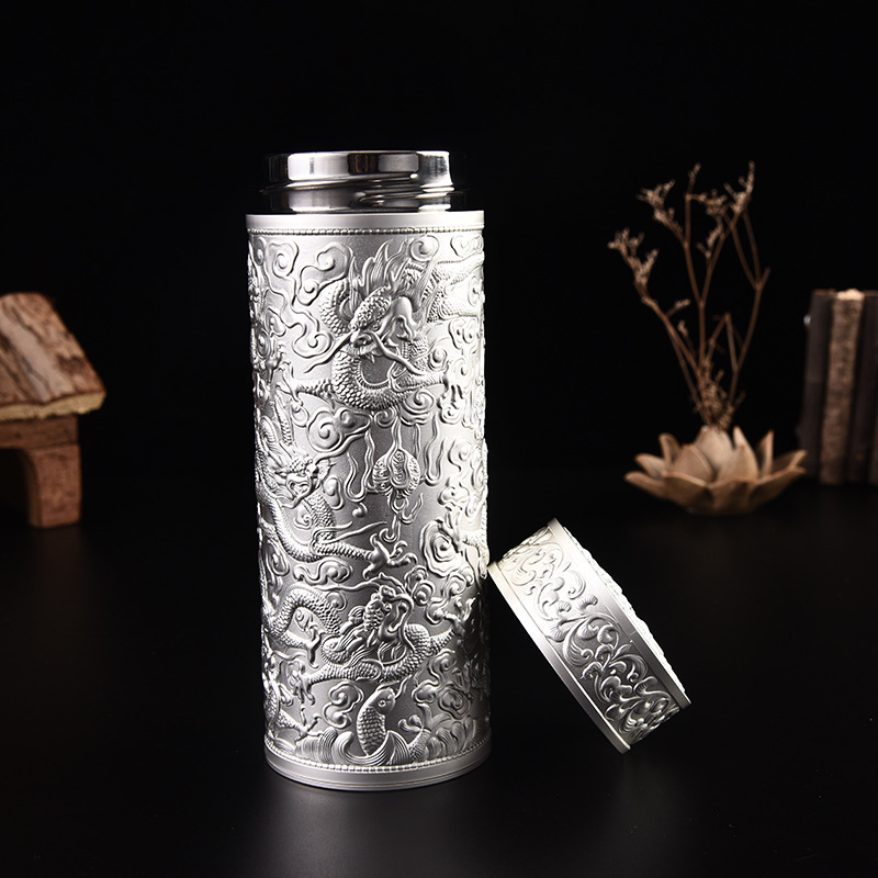 新品九龍杯 純銀 銀製 健康茶飲み 水筒 保温 ボトル 茶文化 シルバー 工芸品 アンティーク コレクション