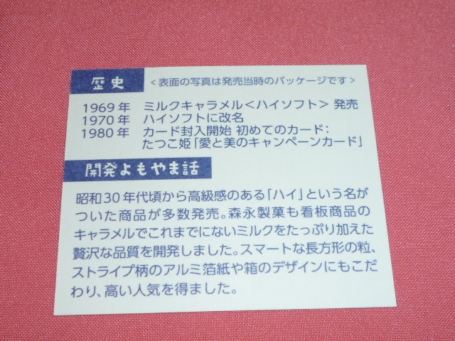 ☆商品説明☆ ご覧いただきありがとうございます^^ 森永 キャラメル Hi-SOFT ハイソフト 森永おかしレトロカードです。と~ってもカッコイイですよ♪大きさはタテ 約5cm、ヨコ 約6cmです。コレクション用として大切に保管していましたので、未使用でたいへんきれいな状態ですが家庭での保管ですのでご理解いただける方のみご入札をお願い致します。 ☆発送方法☆ 定形郵便、定形外郵便、ゆうぱっく ☆コメント☆ ノークレーム、ノーリターンでお願いします。ご不明な点がございましたらお気軽にお問合わせ下さい。他にもいろいろたくさん出品しております☆ 良かったらご覧下さいね*^^*