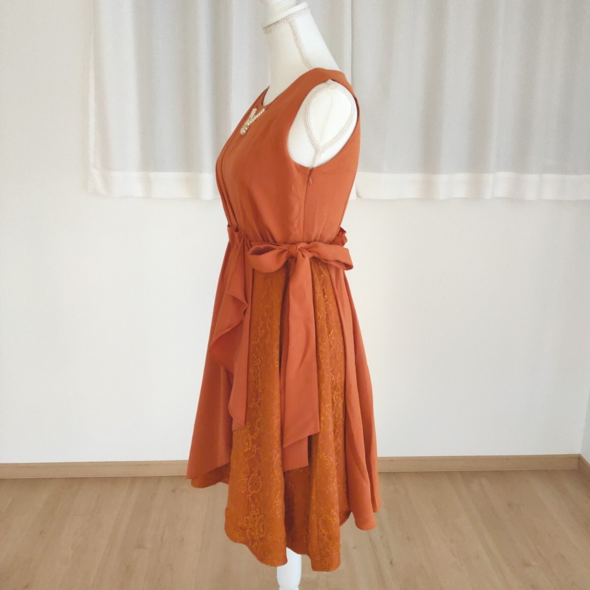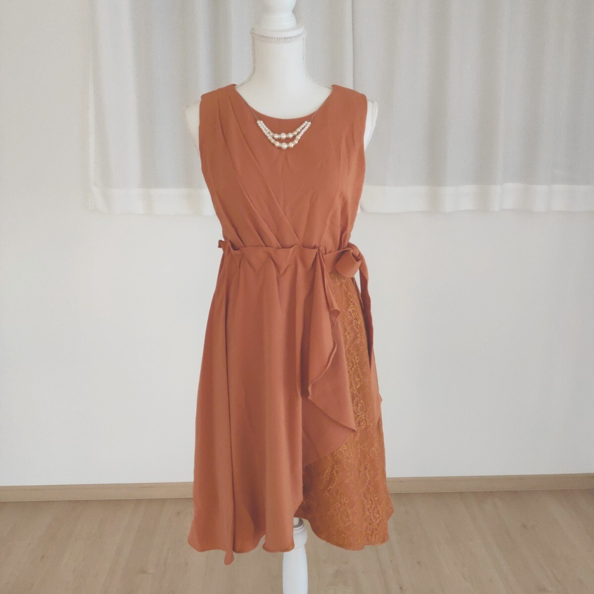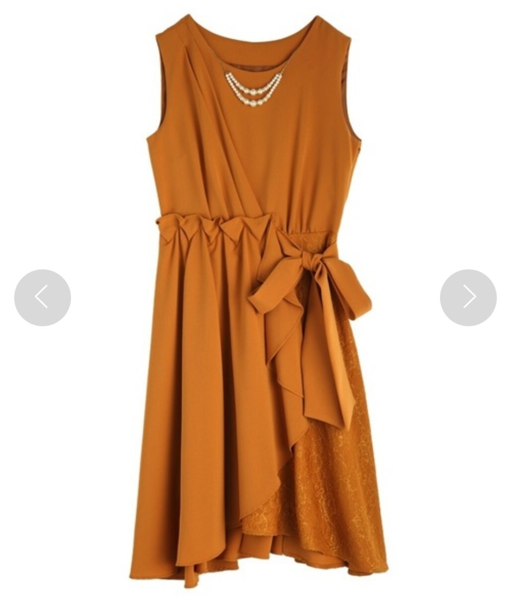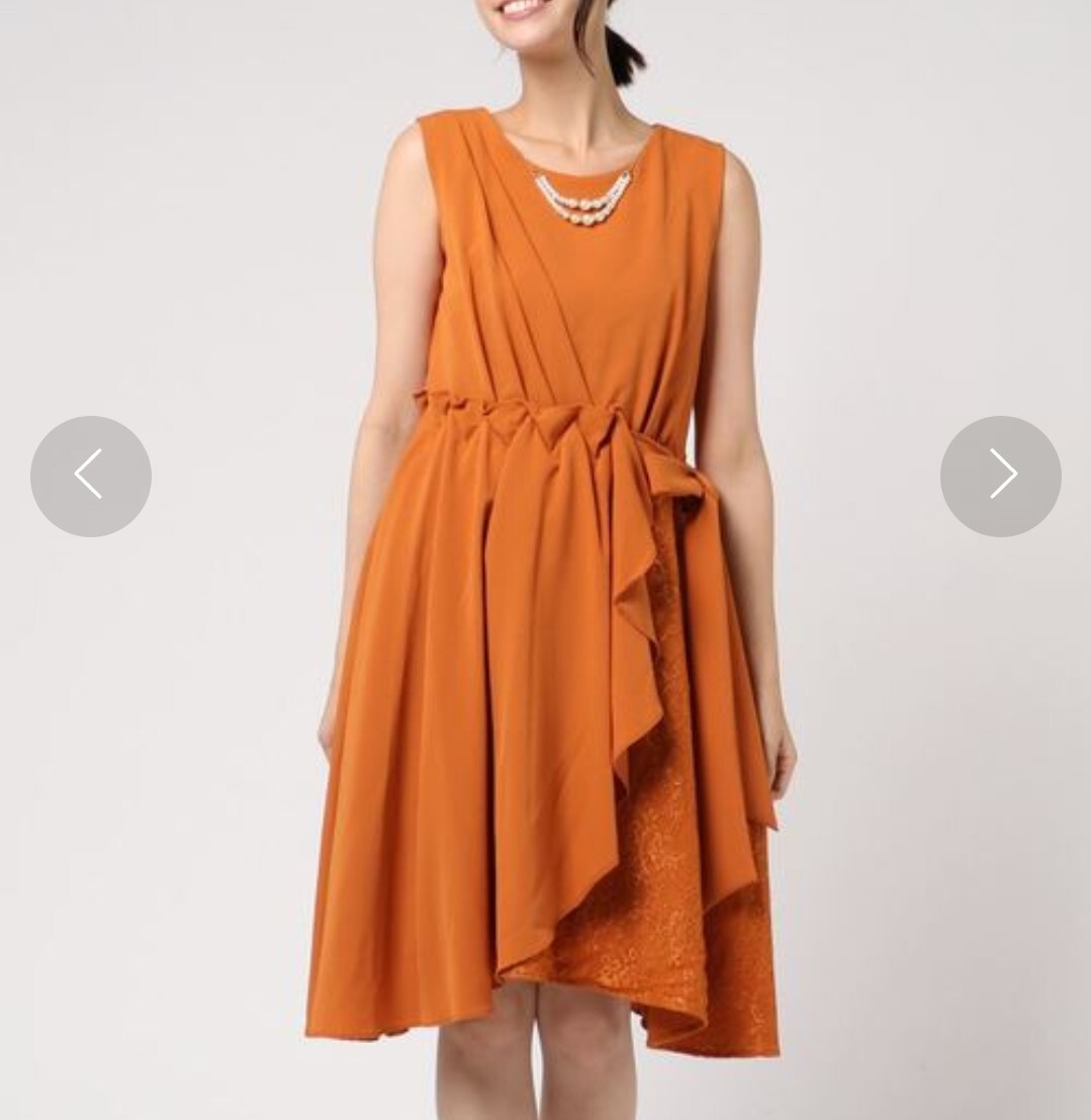 ウエスト部分のタックデザインとアシメが新鮮なパーティードレスです。スカートのスリット部分にレースを重ねた、細部までこだわりが光るアイテムです。