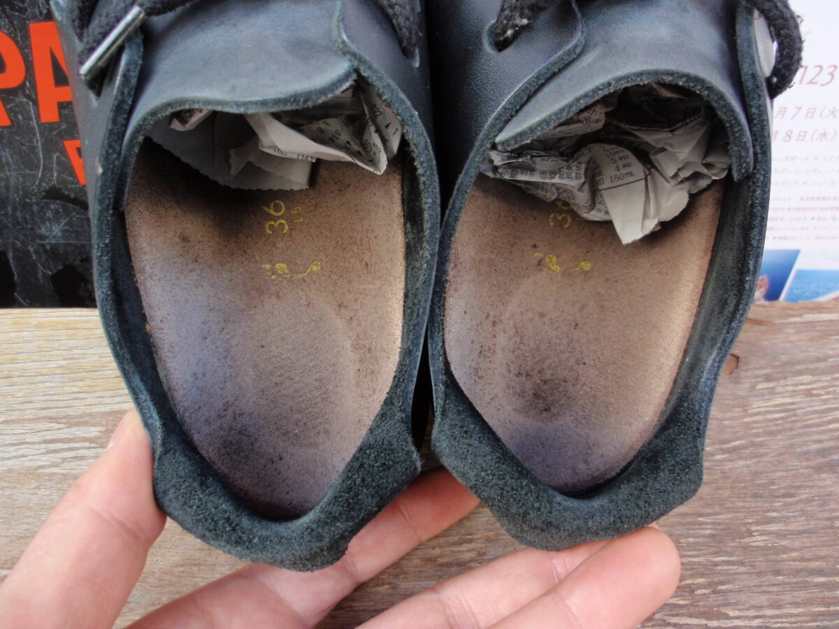 中古品ですので少し使用感ありますが、上手に使っていたので目立った汚れや傷は無く十分使えると思います。ビルケンシュトックの黒革製シューズ「モンタナ」になるかと思います。サイズは36表記です。正規品。
