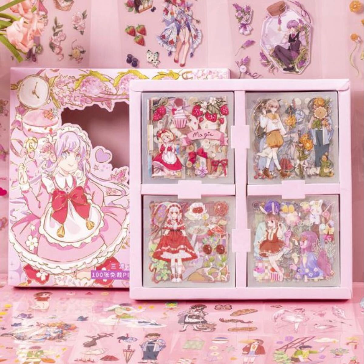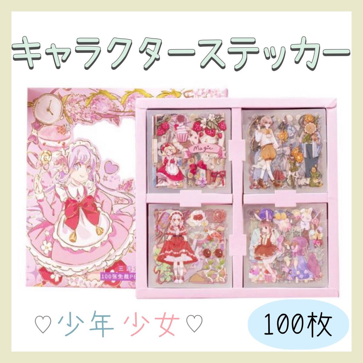 【新品】 少女 少年 キャラクター コラージュ 100枚シートステッカー