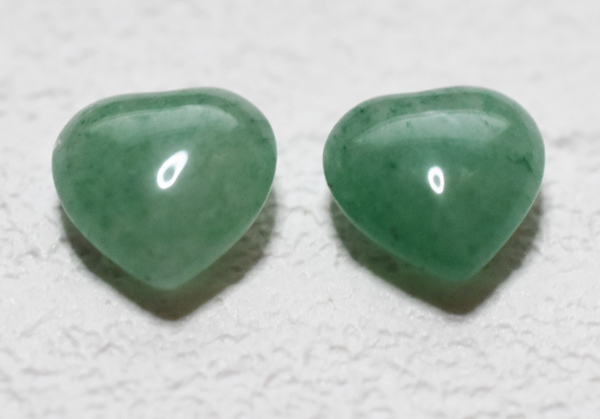 こちらグリーンアベンチュリンをハートの形に加工した一品になります!