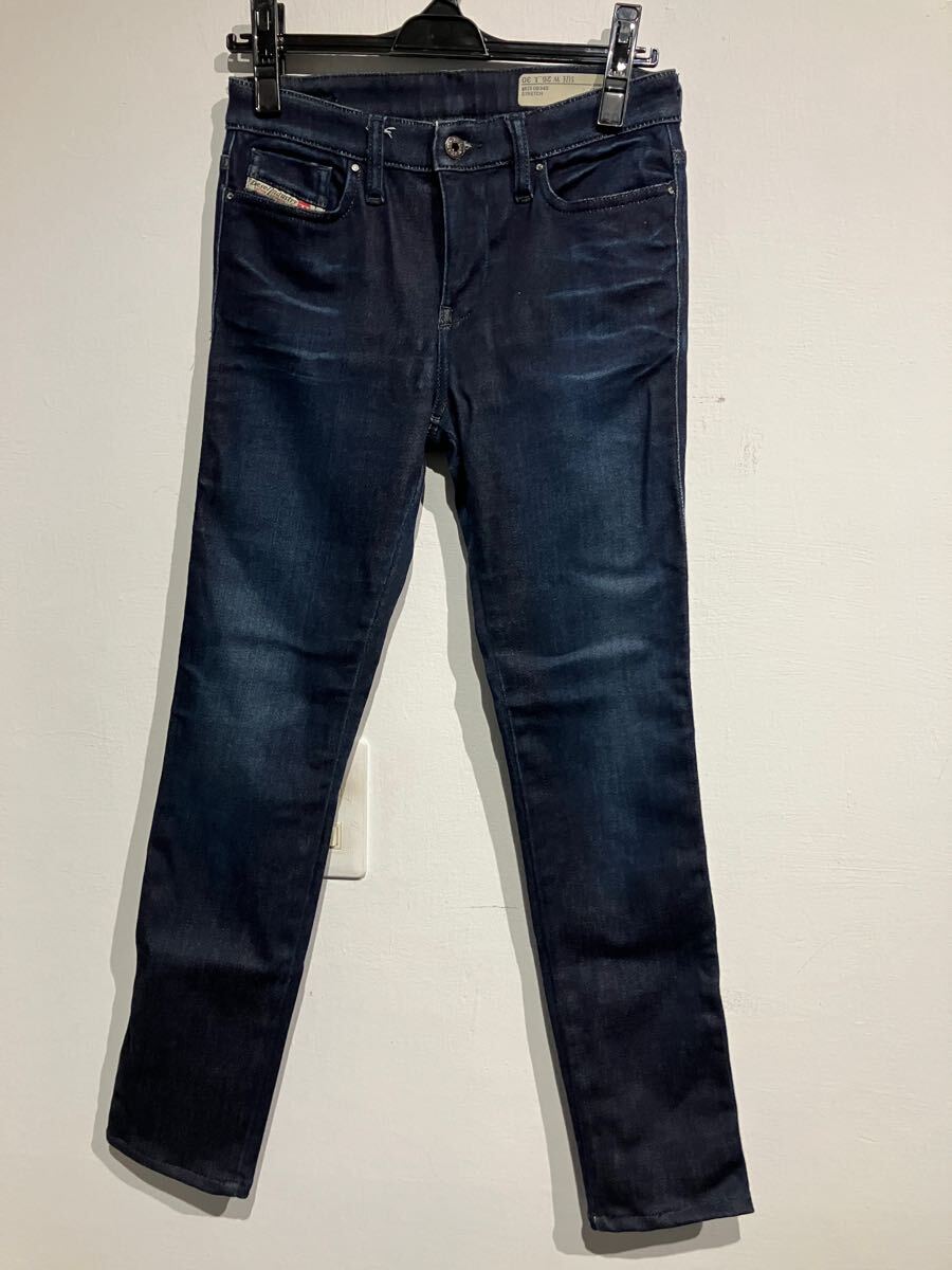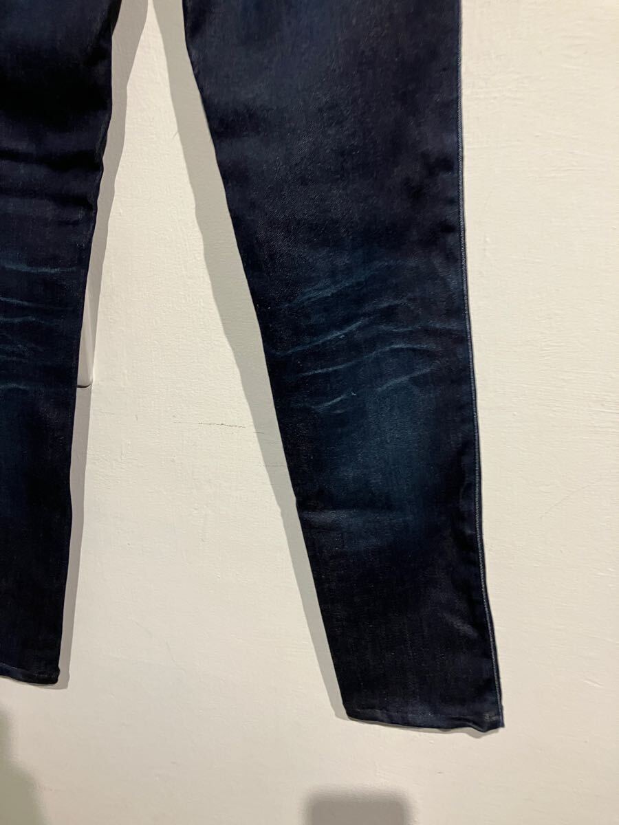 このスキニーデニムは、フィット感があり、スタイリッシュなシルエットを提供します。ダークブルーの色合いは、様々なトップスと合わせやすく、カジュアルからフォーマルまで幅広いシーンで活躍します。