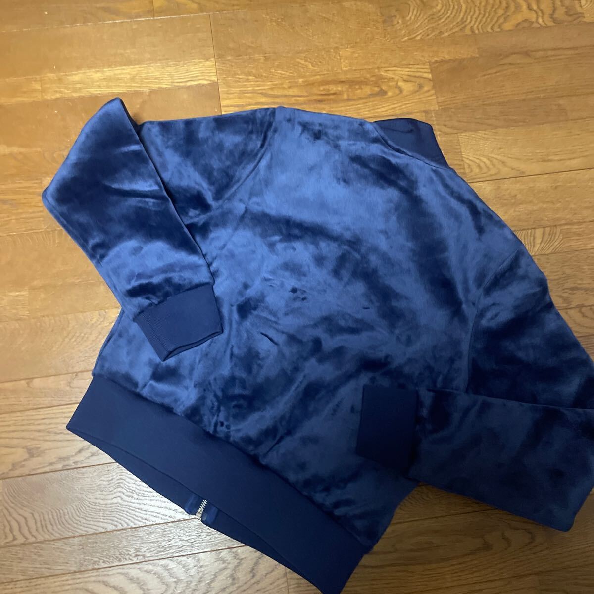 ベロア素材で気軽に着用いただけます。さすがスポーツブランドadidasです。新品未使用ですが一度私の手に渡ったのもですので新古品、美ユーズド扱いにて出品致します。シンプルなかっこいいデザインですよ!お出かけ・スポーツにご活用ください。お洒落でスタイルを選ばない永遠不滅の流行り廃りのないデザインですので永く御愛用頂ける逸品と思います。本当にシンプルなので一枚あると便利ですよ!タグのサイズMはになっております。