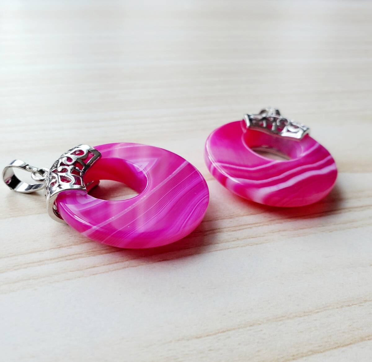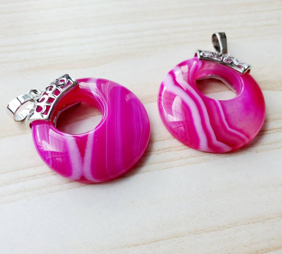 ◆商品名・・・【ピンクオニキス】ペンダントトップ2個セット *添付画像の物は実際にお送りするお品です。 *アゲート染め ◆サイズ・・・縦4.0㎝(金具込み) 横幅2.7㎝(最長部分) 約7.8g/1個 ◆素材・・・天然石 ステンレス 亜鉛合金 *紐(チェーン)は付属しません。 ◆天然石の為、含有物・小さなキズや欠け・微妙な色味の違いや模様の違い等がある場合がございます。予めご了承くださいませ。 金具部分はステンレスなので、さびにくい素材になっています。 ★☆他にも天然石ペンダントトップ出品中☆★ |