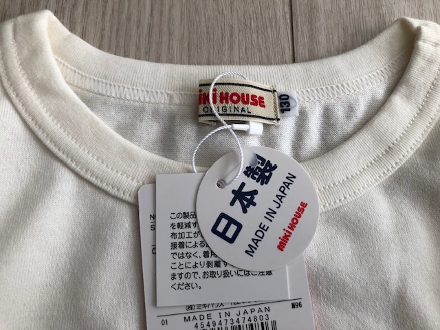 ★新品MIKI HOUSEミキハウスロゴ長袖Tシャツ130★生成り送料\185