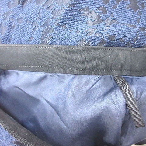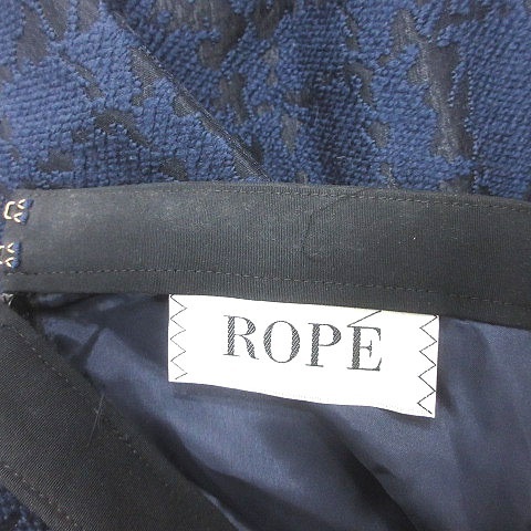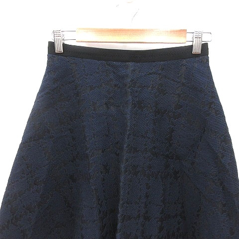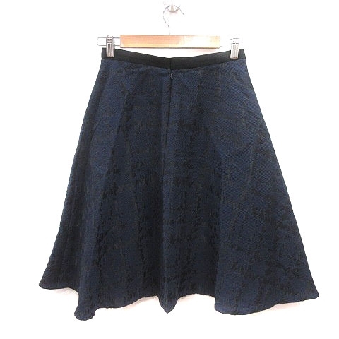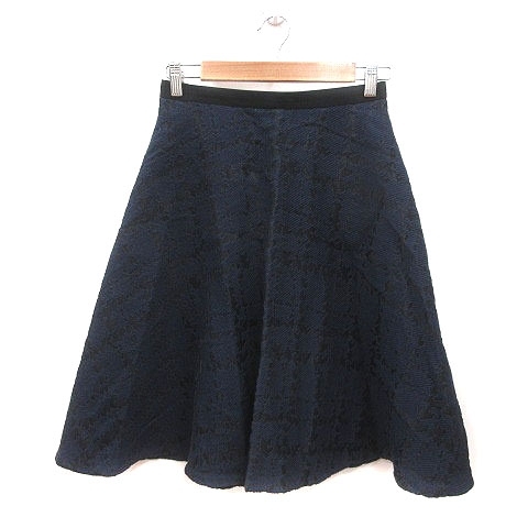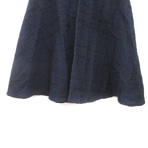 ロペ ROPE フレアスカート ひざ丈 ウール 総柄 38 M 紺 ネイビー 黒 ブラック /MS レディース