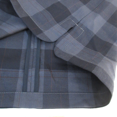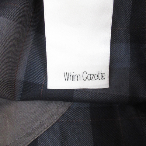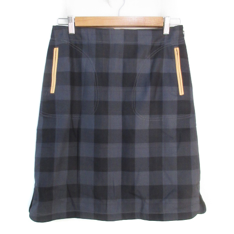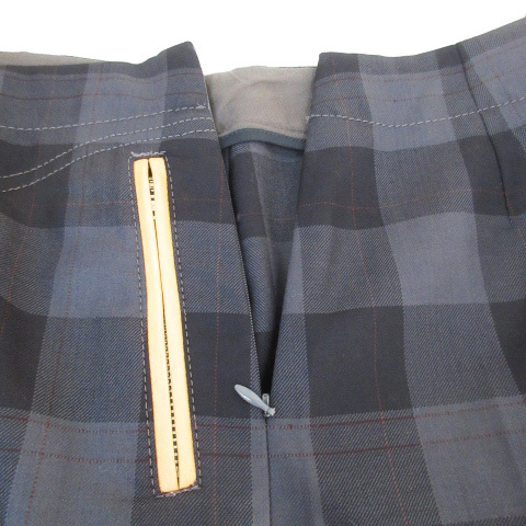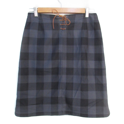ウィムガゼット Whim Gazette フレアスカート ひざ丈 レースアップ リボン チェック柄 38 M 紺 茶 ネイビー ブラウン /FF3 レディース