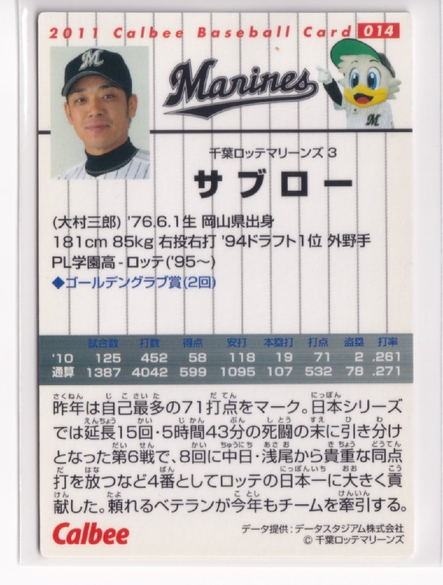2011プロ野球チップス第1弾 14 サブロー(ロッテ)