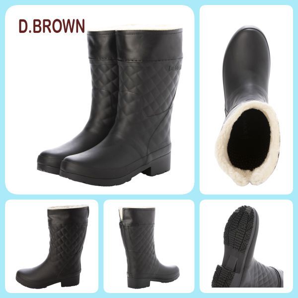 キッズ 防水防寒ブーツ ダークブラウン 23.0cm レインブーツ ファー付き 長靴 雨靴 完全防水 耐候性 屈曲性 防滑底 幅広 xm_24062