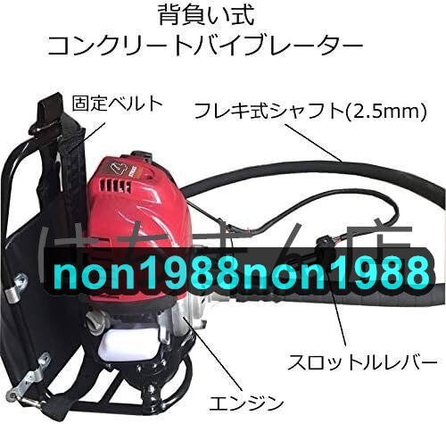 コンクリートバイブレーター エンジン式 1200w/7000rpm 背負い式 シャフト長さ2.5m 左官/建築/ハイウェイ/ダム/橋/土木 高効率 使いやすい