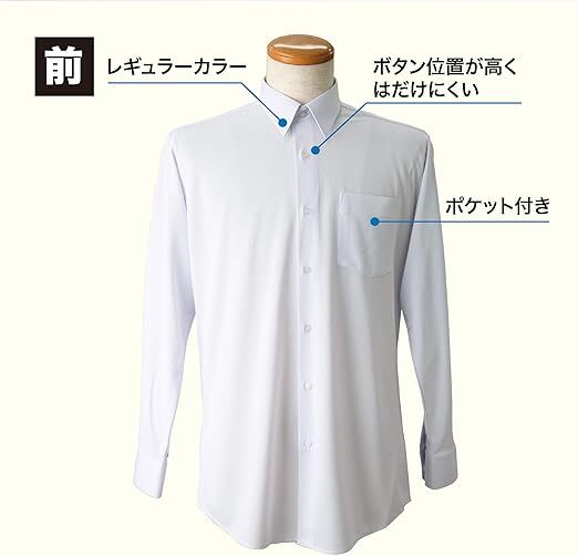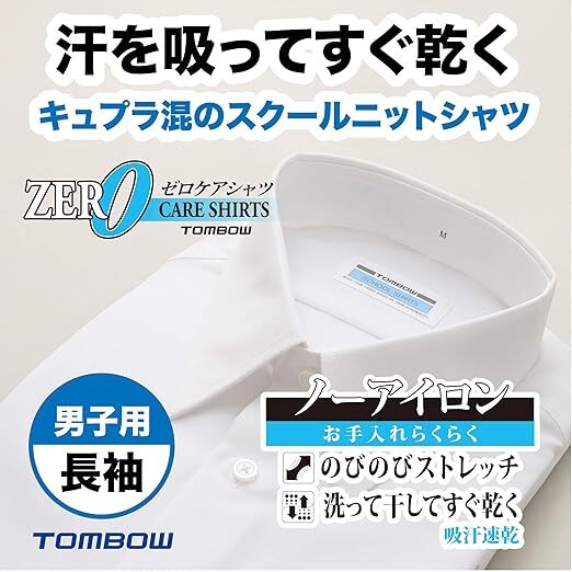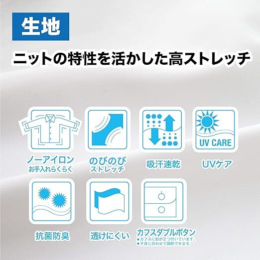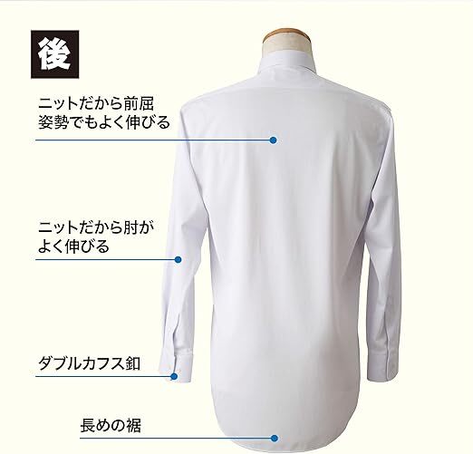 男子 長袖スクールシャツ 2枚ニット素材 サイズ・EL1枚・BL1枚ノーアイロン シワにならない 吸汗速乾 ストレッチ ニットシャツ