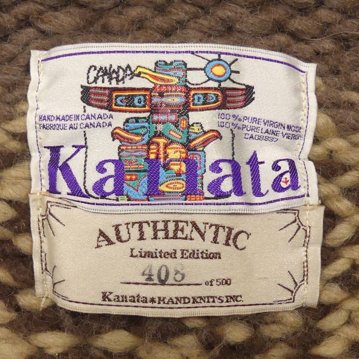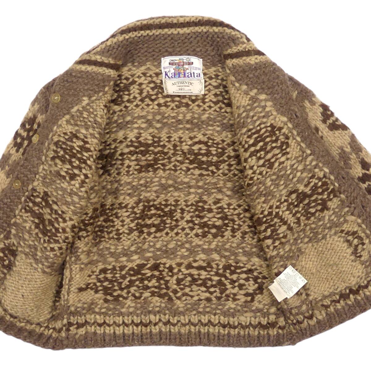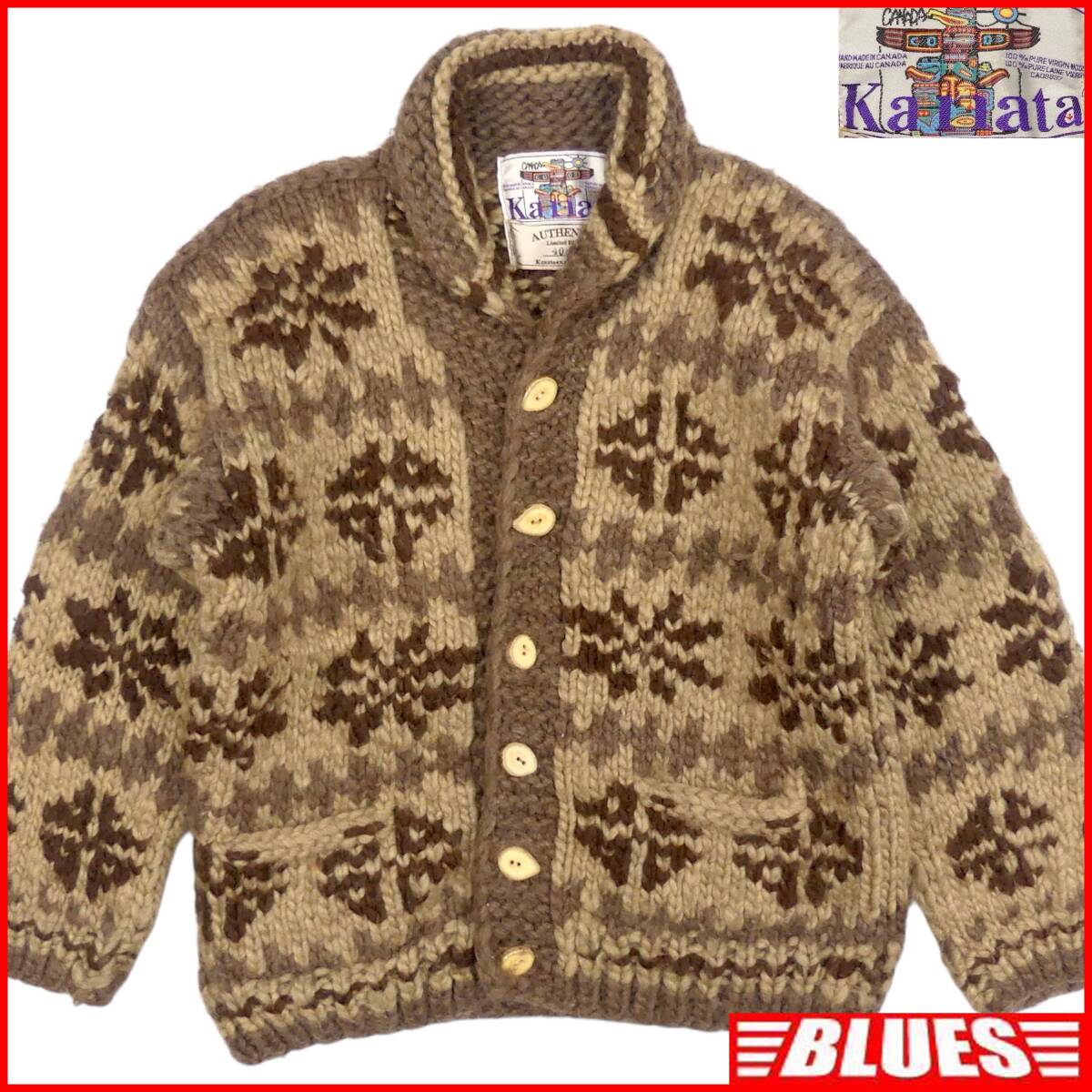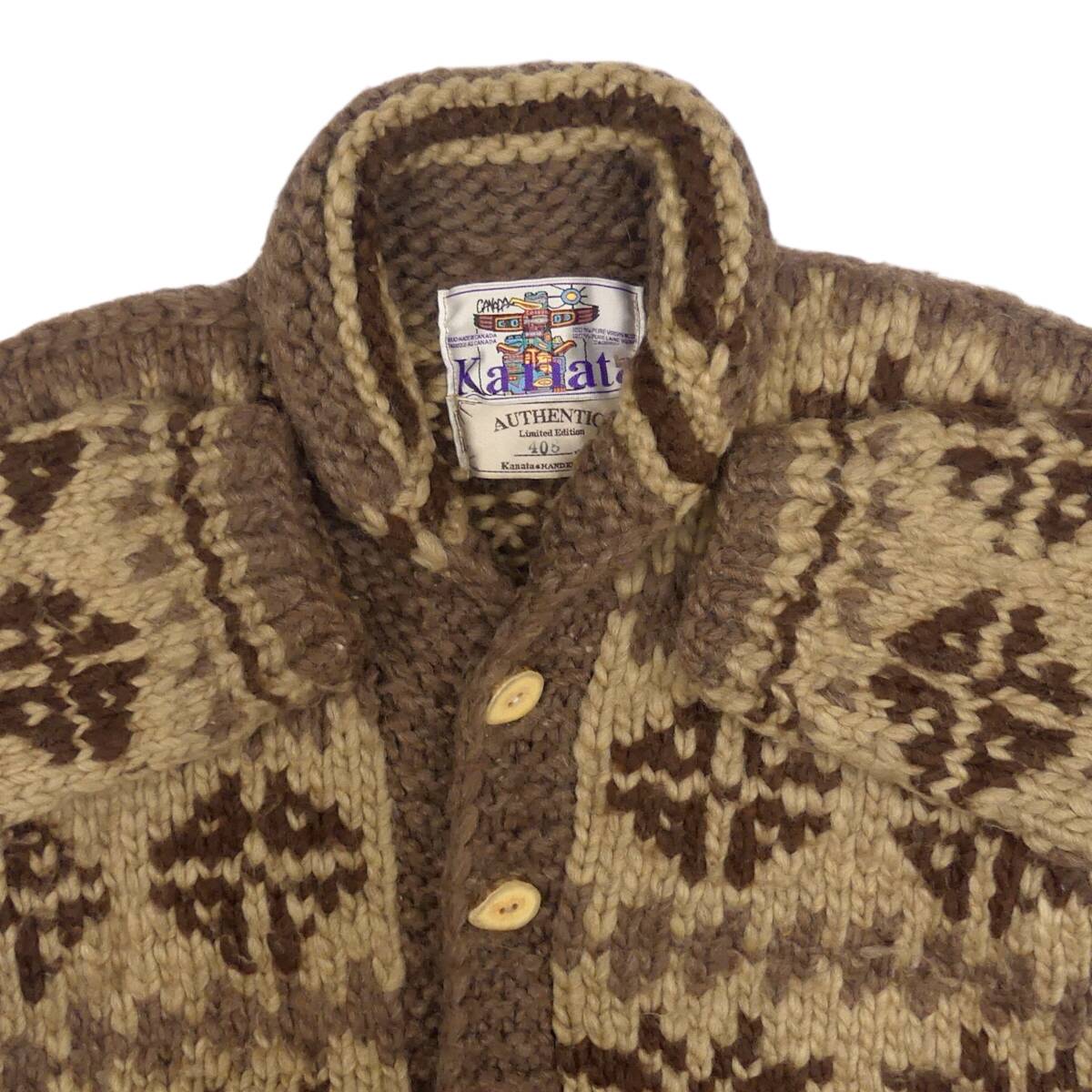 即決★カナダ製 KANATA★メンズXL位 カウチンセーター カナタ 茶 雪柄 ウール ニット セーター カーディガン メープルボタン