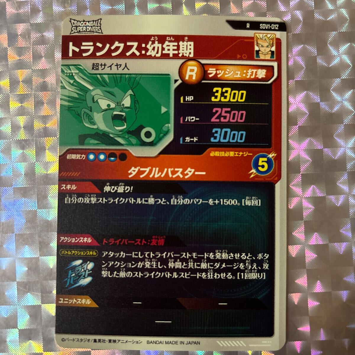 1弾レア/ トランクス:幼年期(超サイヤ人)/ SDV1-012/ 技:ダブルバスター/ ラッシュ:打撃/ ドラゴンボール スーパーダイバーズ/ BANDAI