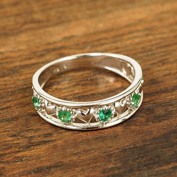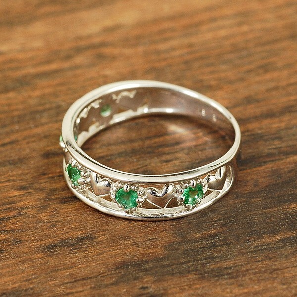 大人っぽいエメラルドをハートと合わせてラブリーにしたピンキーリングです。
