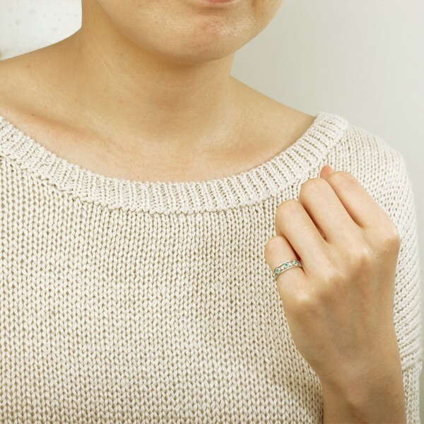 エメラルドを5石施してしており、キラキラ爽やか&リング幅もしっかりあるので存在感があります。