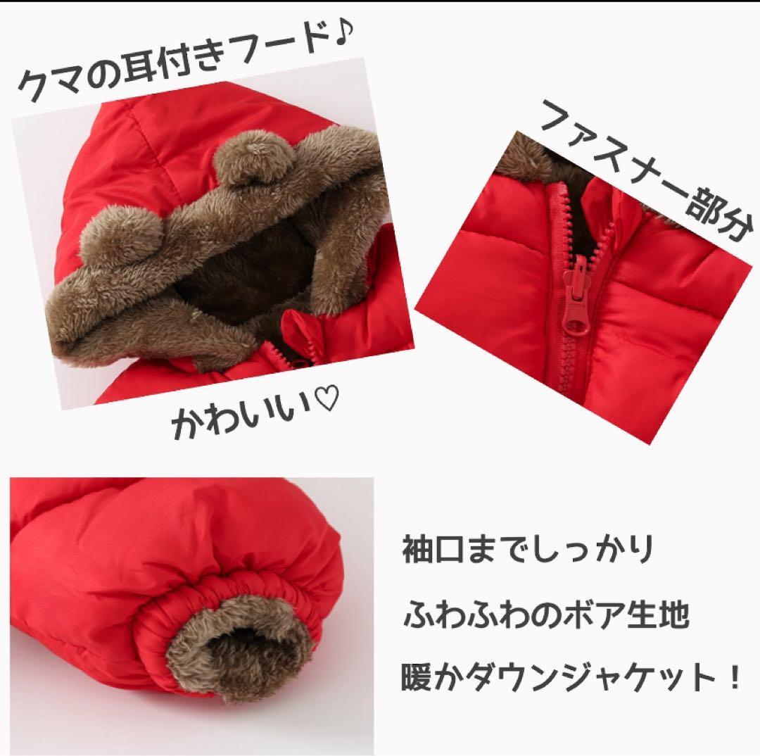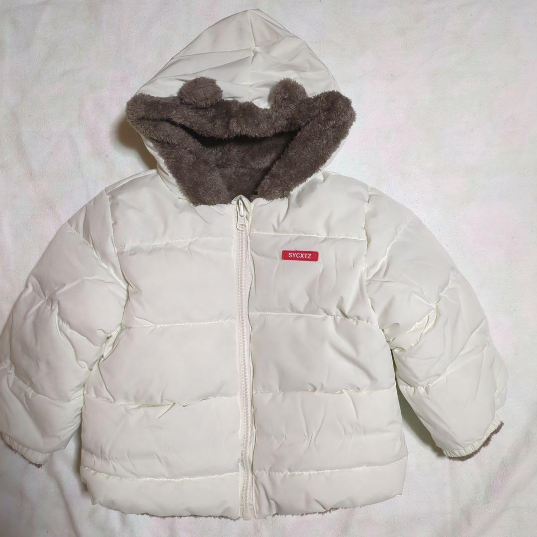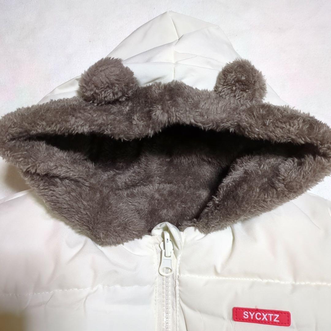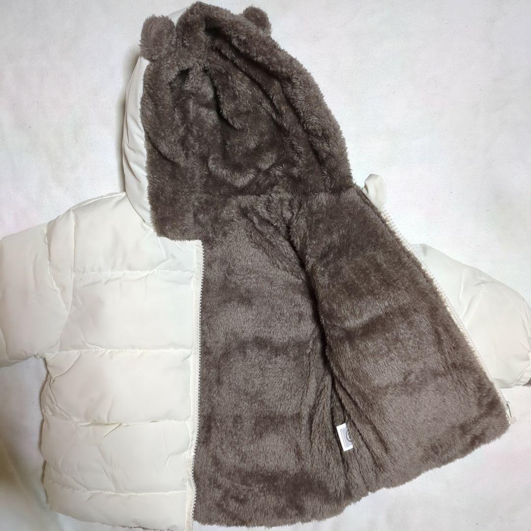 くまさんの耳付きフードのかわいいデザインに、防風性能も兼ね備えたダウンジャケットです♪
