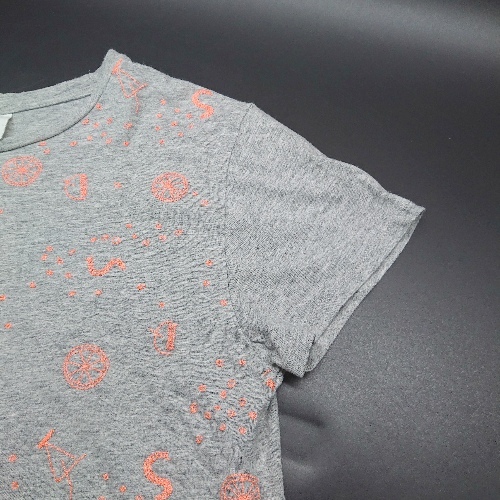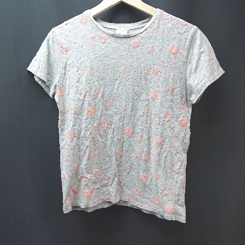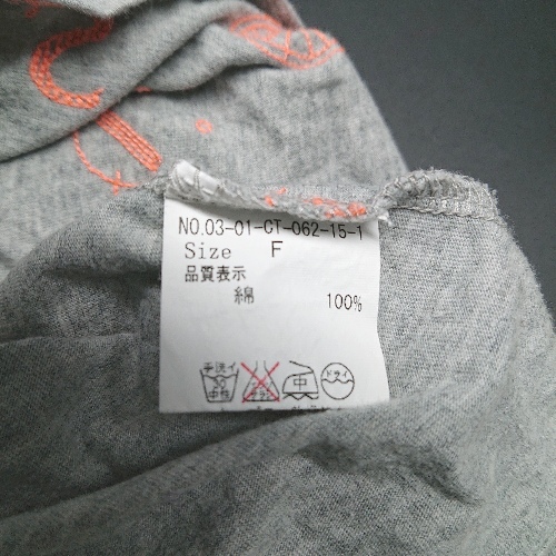 ◇ bulle de savon クルーネック 刺繍 カジュアル 半袖 Tシャツ サイズF グレー オレンジ レディース E