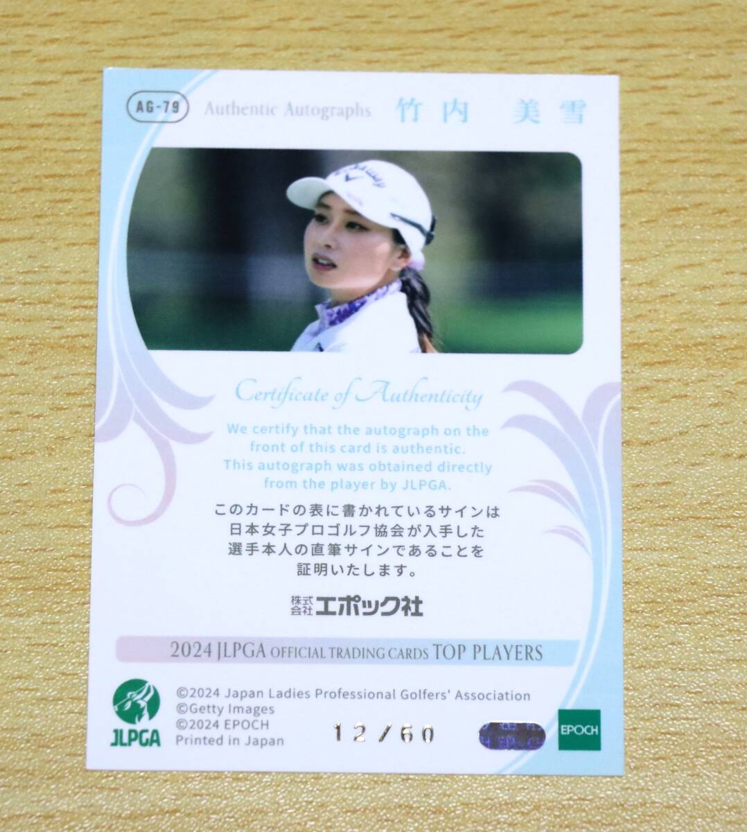 2024 JLPGA TOP PLAYERS 女子ゴルフ 竹内美雪 オーセンティックオートグラフカード (直筆サインカード)です。気に入って頂けた方の落札を心よりお待ちしております。発送は定形郵便又はレターパック又はゆうパケットポストで発送となります。大きさの都合上、定型郵便の場合は片面段ボール補強、レターパック又はゆうパケットポストの場合は両面段ボール補強もしくは片面段ボール補強+プチプチ梱包のどちらかにて発送致します。何卒宜しくお願い致します。