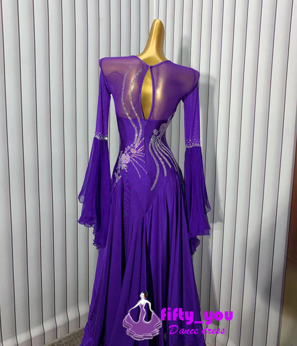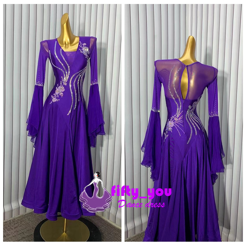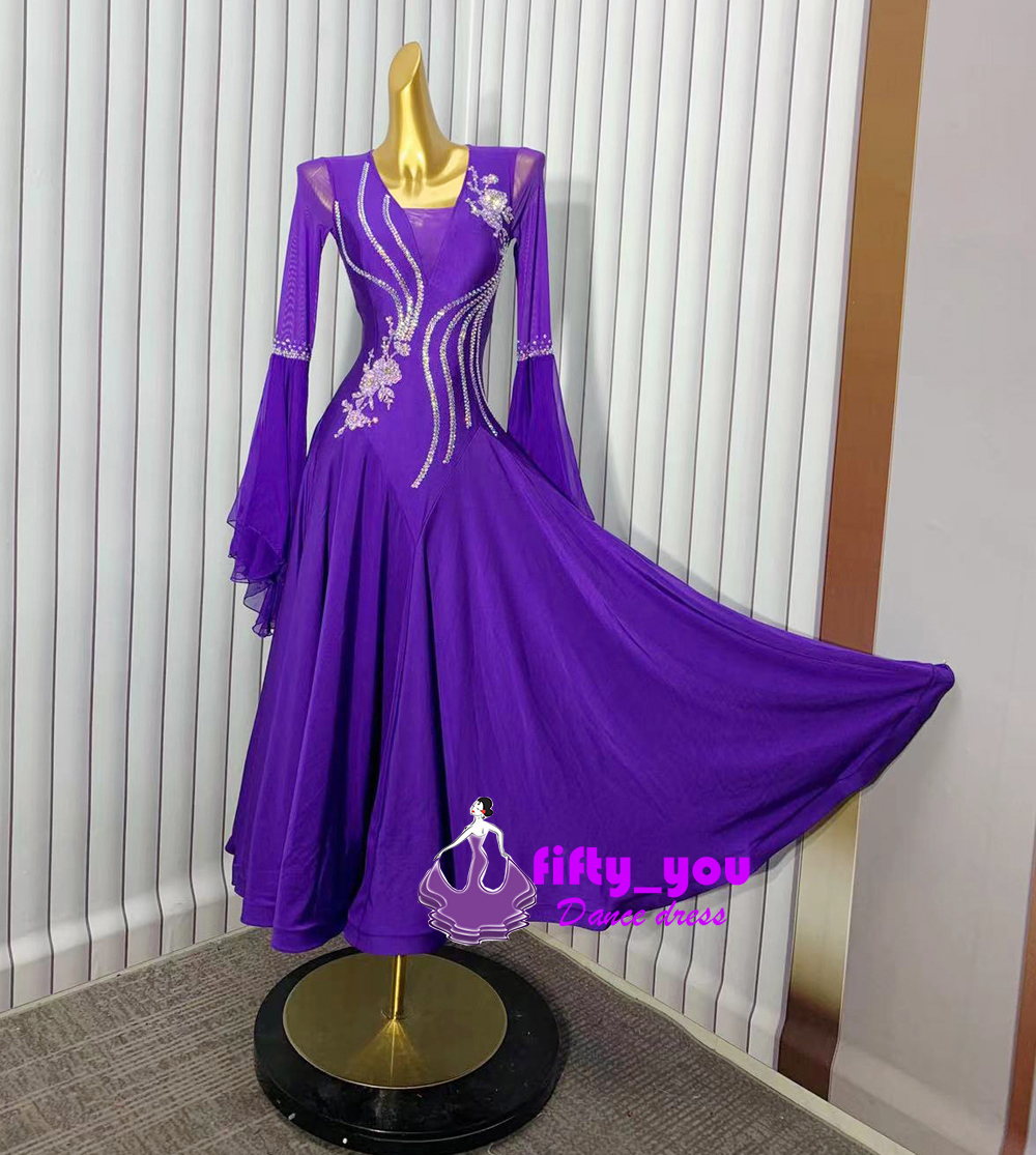 新品fifty_you魅力サイズセミオーダー ハイクオリティドレス レディース社交ダンス衣装 社交ダンスドレス ライトストーン飾 パープル