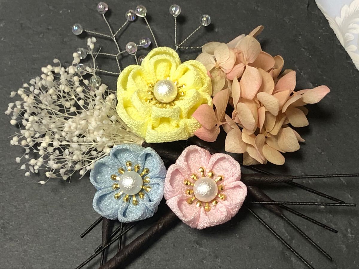 お花の付ける位置を変えて色々アレンジしてみて下さい。
