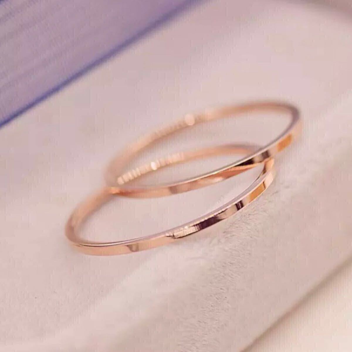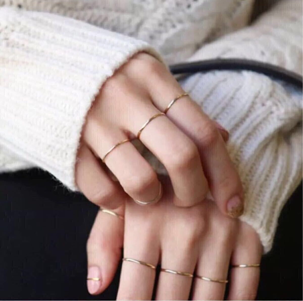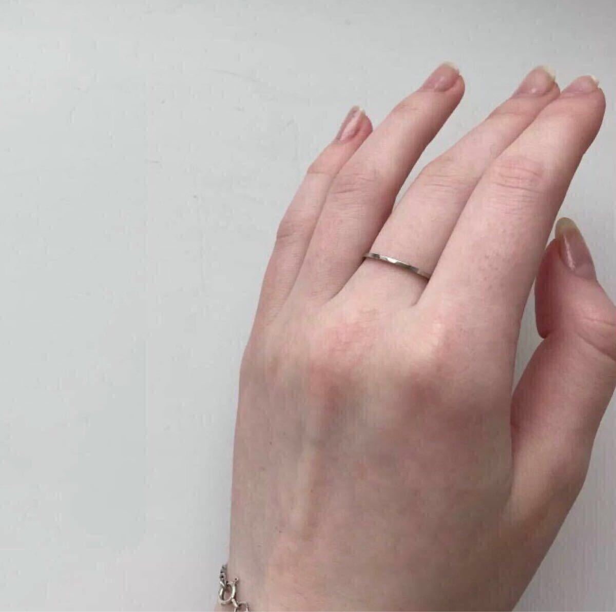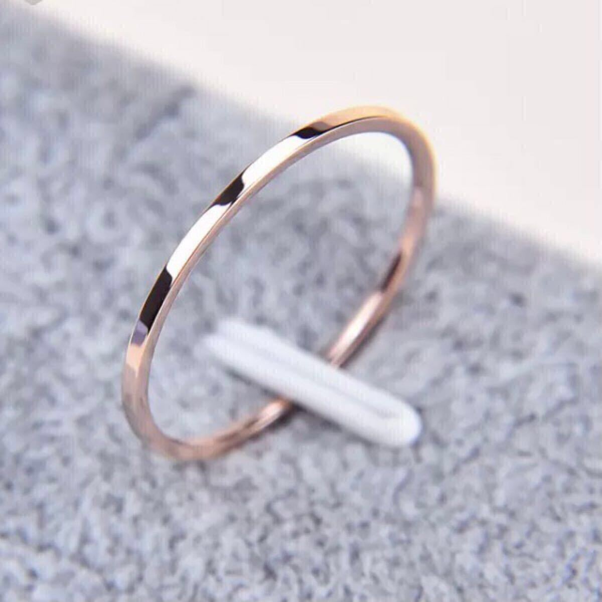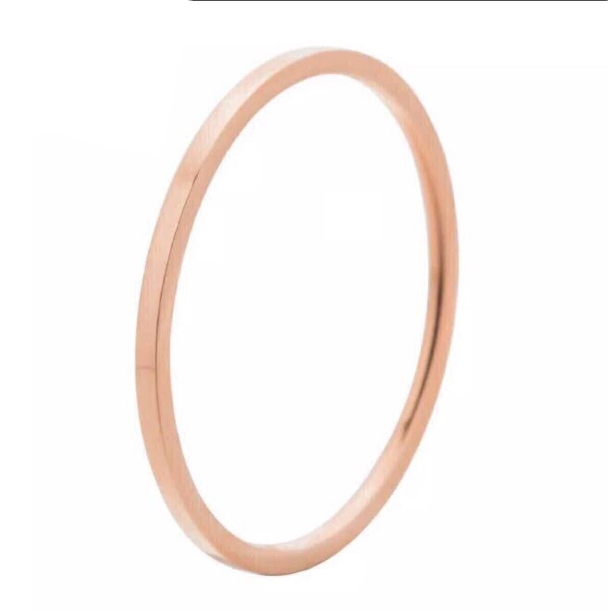お肌に優しいステンレス素材にピンクゴールドを施した、シンプルなリングです。1mmの細いフォルムが魅力です。