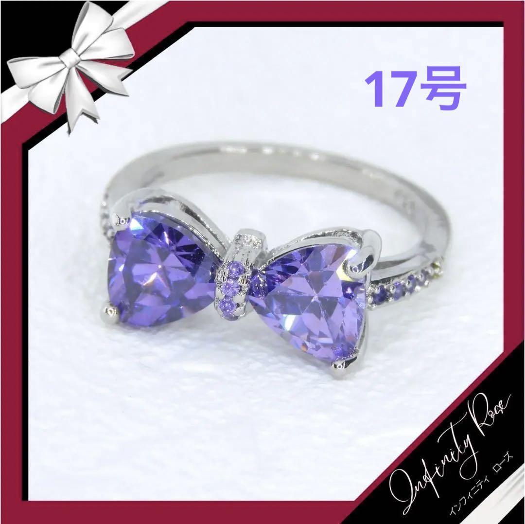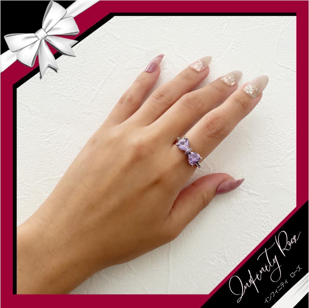 (R067S)17号 パープル大人可愛い立体リボンリング  高価爪留め指輪