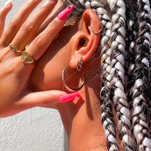 描いている事。ただ大きなフープピアスではなく、