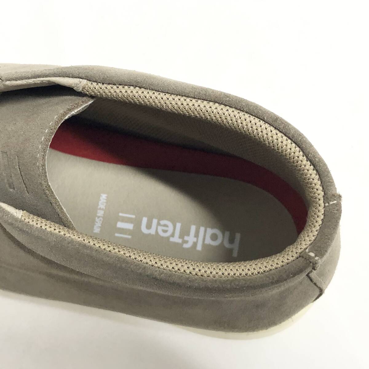 スペイン発のシューズブランドCallagHanに製作を依頼した、オリジナルのフットウエアから新たにハイカットのデザートブーツをリリース。モカ縫いが特徴的な牛スウェードアッパーにhalfTenのシグネチャーデザインを刻印。オリジナルのソールユニットでレザーシューズのルックスながらスニーカーのような履き心地に。