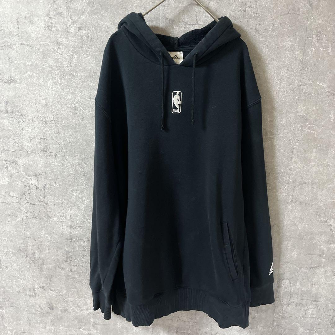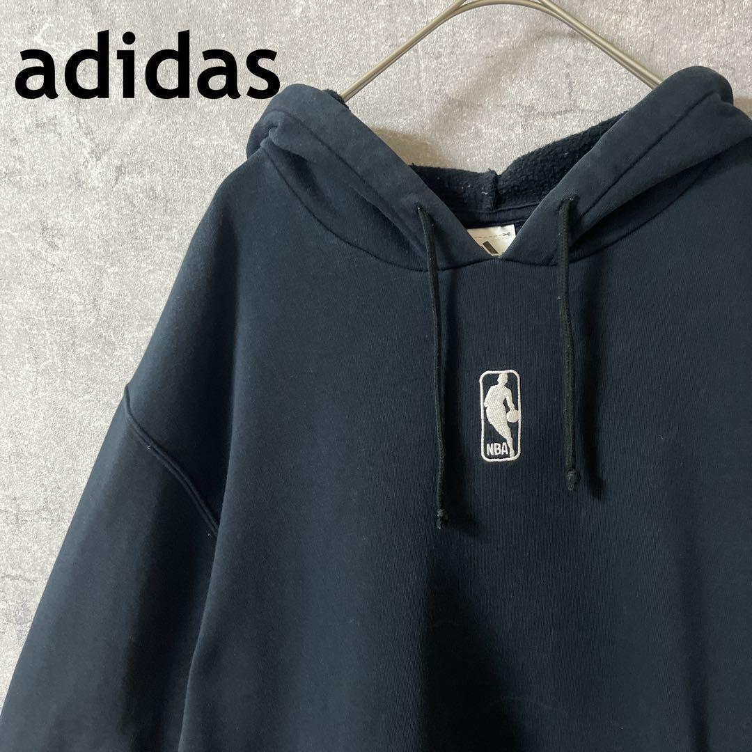adidas NBA スウェットパーカー センターロゴ刺繍 黒Lメンズ B1