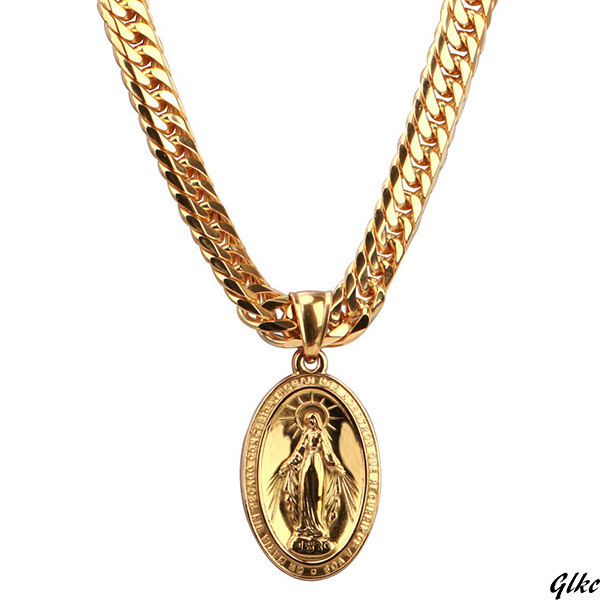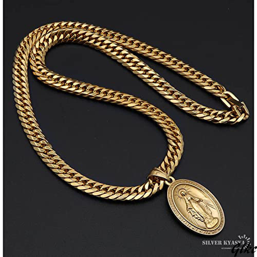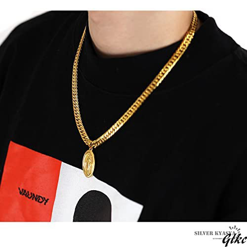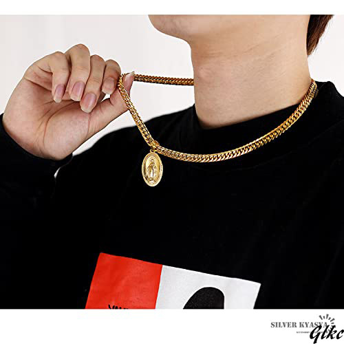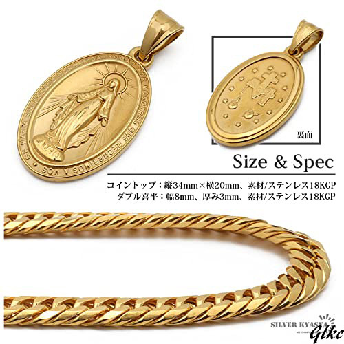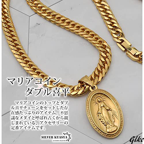 【ラグジュアリーな18Kメッキ加工が施され、高級感を演出】 6面カット ダブル喜平ネックレス 18k 奇跡のメダイ ネックレス