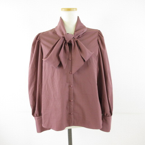 グレイル GRL ロングカフスリボンタイブラウス シャツ 長袖 ダークピンク L *T353 レディース