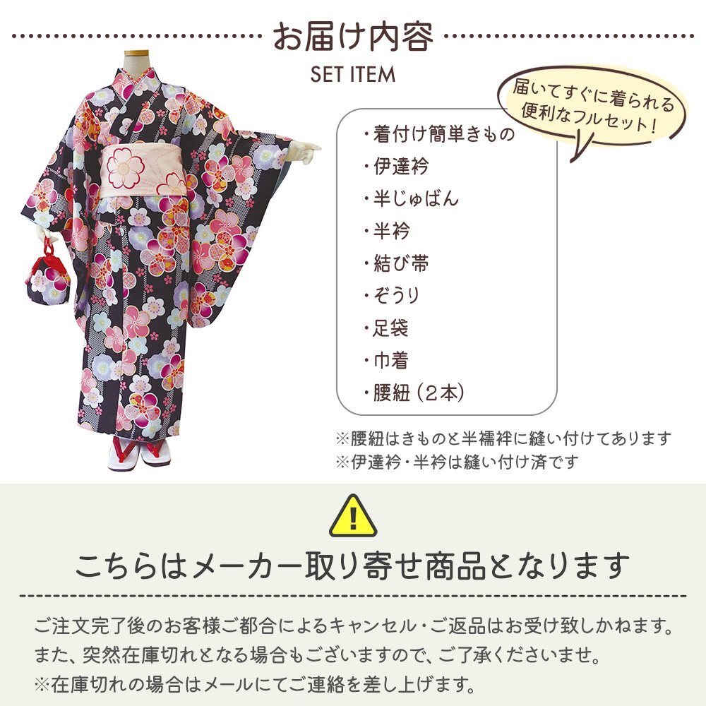 身上げ・肩上げ済みでの着付けかんたん着物と形ができている結び帯のセットですので、初めての方でも安心!