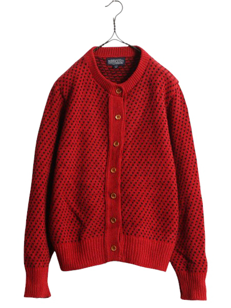 90年代のオールド ランズエンドの長袖ニットカーディガンです。 LANDS'ENDは、 1963年シカゴ設立のアメリカ最大級の上級の カジュアルファッションブランドです。 素材は、85% WOOL:15% NYLON (ウール ナイロン) 快適なミドルゲージ、ストレスのない着心地の 保温性の高い素材が使用されています。 MADE IN USA ( アメリカ製 ) 7ボタンフロント、温かみのあるウッドボタン使用 人気のバーズアイ、ノルディックの総柄 レッド × ブラック の好配色2トーン 時代に左右されないオーセンティックなデザイン 長く愛用できる商品です。 |