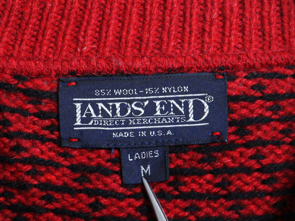 | 商品名 | 90s USA製 ランズエンド バーズアイ ニット カーディガン レディース M オールド LANDS END セーター ウール ノルディック ツートン 重ね着 |
