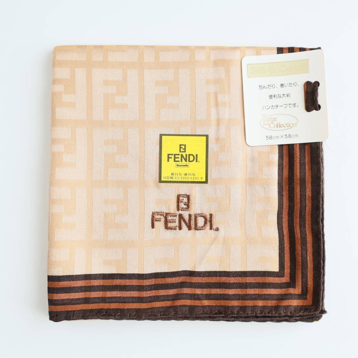 ご覧いただきまして誠にありがとうございます。 未使用 FENDI フェンディ シルク&綿 大判 ハンカチです。 サイズ 約58cm×約58cm 素材 絹55% 綿45% ※保管による僅かな傷や汚れ、シワ等はご了承お願いいたします。 | ||